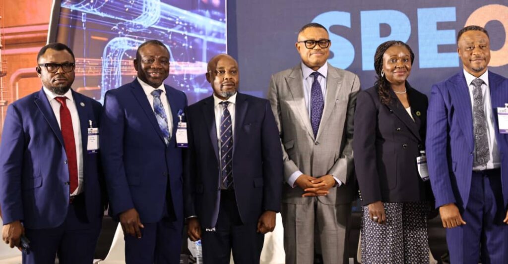 – L-R: The MD/CEO, Seaquest Exploration and Production Services, Mr. Etta Agbor; Director, Competitive Performance, Nigeria and Mid Africa Region, Chevron Upstream, Mr. Kunle Adeyemo; Head, Energy Sector, Client Coverage, Corporate and Investment Banking, Stanbic IBTC, Mr. Imoh Umah; Executive Vice President, Upstream, NNPC (representing NNPC GCEO), Mr. Udibong Ntia; Commission Chief Executive, Nigerian Upstream Petroleum Regulatory Commission (NUPRC), Mrs. Oritsemeyiwa Eyesan and Chairman, Society of Petroleum Engineers (SPE), Nigeria Council, Mr. Francis Nwaochei at the 2026 edition of the Society of Petroleum Engineers (SPE) Oloibiri Lecture Series & Energy Forum (OLEF) held in Abuja recently